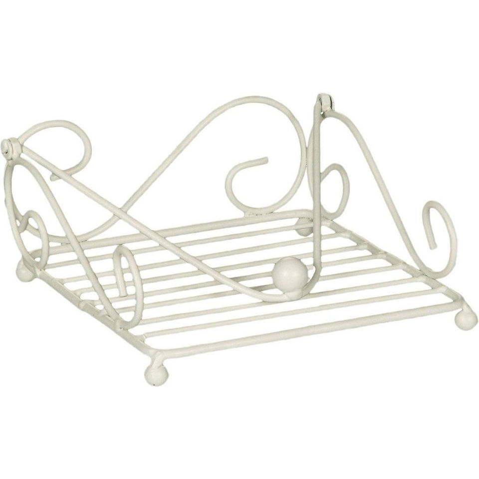 Porte-serviettes en fil métallique blanc au design élégant, motif festonné, support décoratif en fer, prix abordable, vente chaude