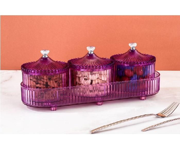 Vente chaude élégante boîte de service en verre avec boutons en cristal comprend 3 pots amovibles conteneur de stockage transparent utilisation en cuisine