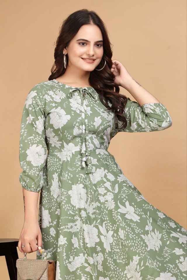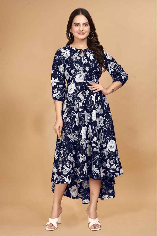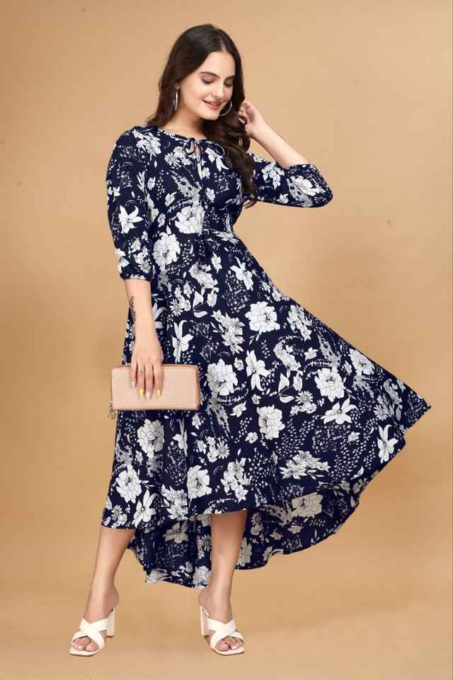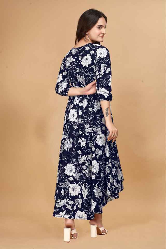 Vente chaude Look élégant couleur incroyable belle crêpe américaine avec imprimé fleuri longue robe fabricant de l'Inde