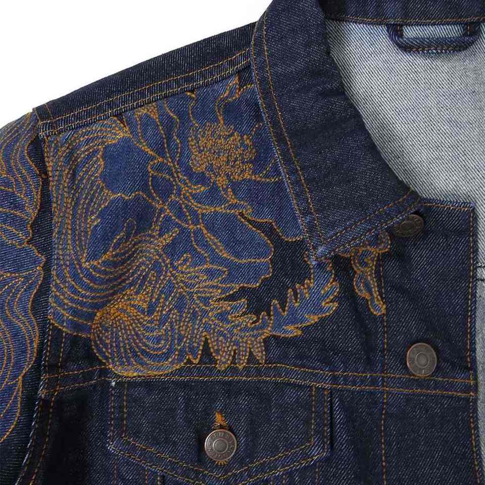 Veste brodée pour homme, très tendance, designs hivernaux high street, denim de haute qualité