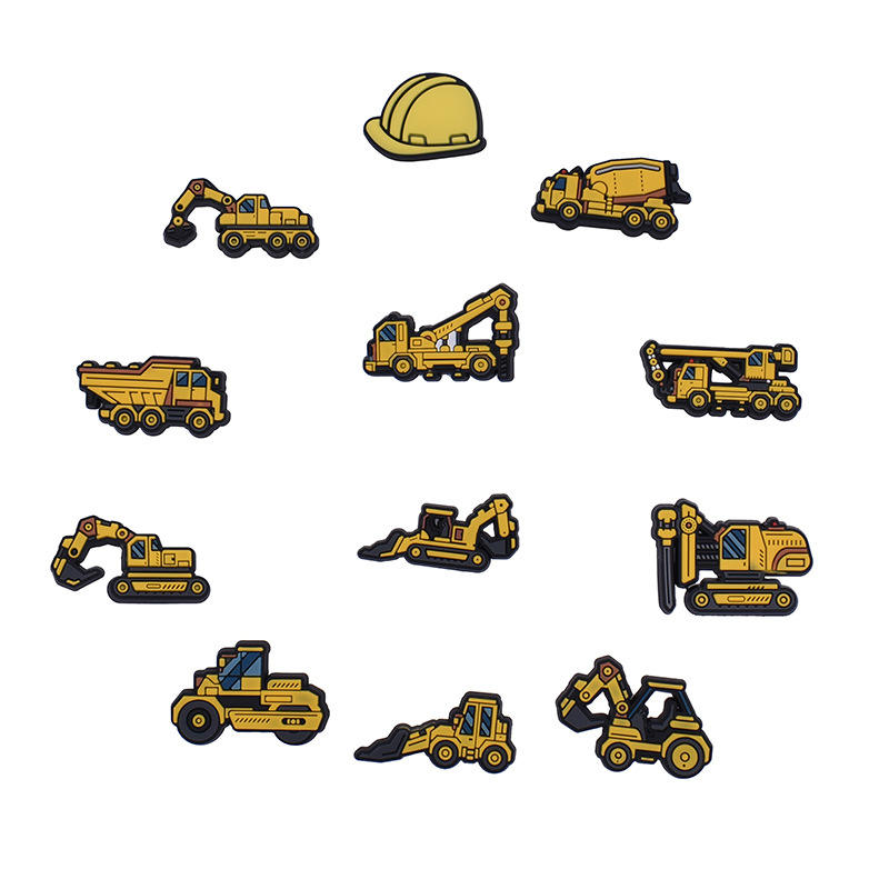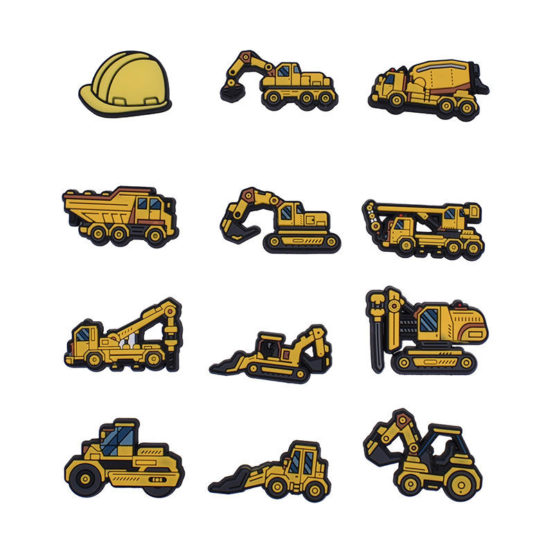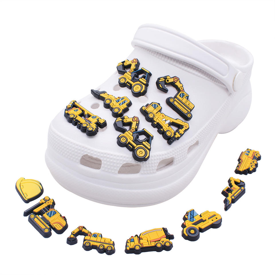 Vente chaude Ingénierie Véhicule Pelle Série Jardin Chaussure Charmes Dessin Animé PVC Chaussure Accessoires pour garçons Personnalisé