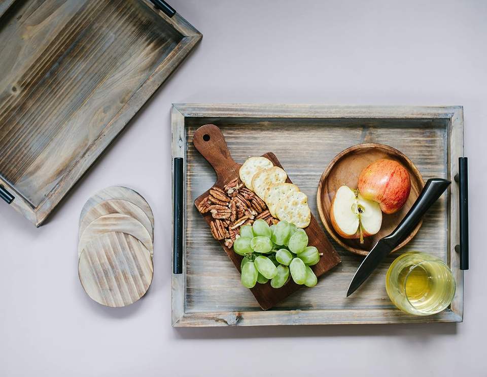 Vente chaude Résine Époxy Mariage Plateau De Service avec Poignée En Métal Maison Restaurant Mur Décoratif Conception Côtière Couleur Personnalisée