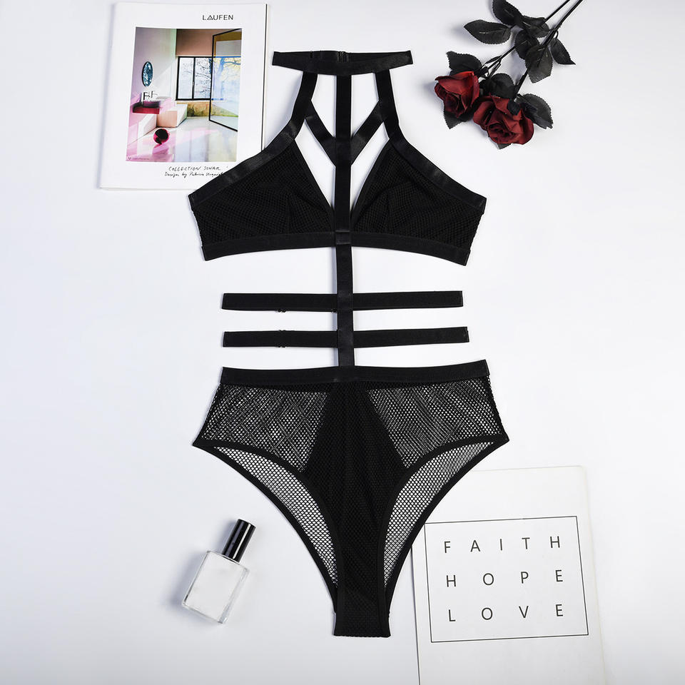 Meilleures ventes : Ensemble de lingerie érotique sexy, body une pièce en résille transparente à bretelles de bondage ajourées