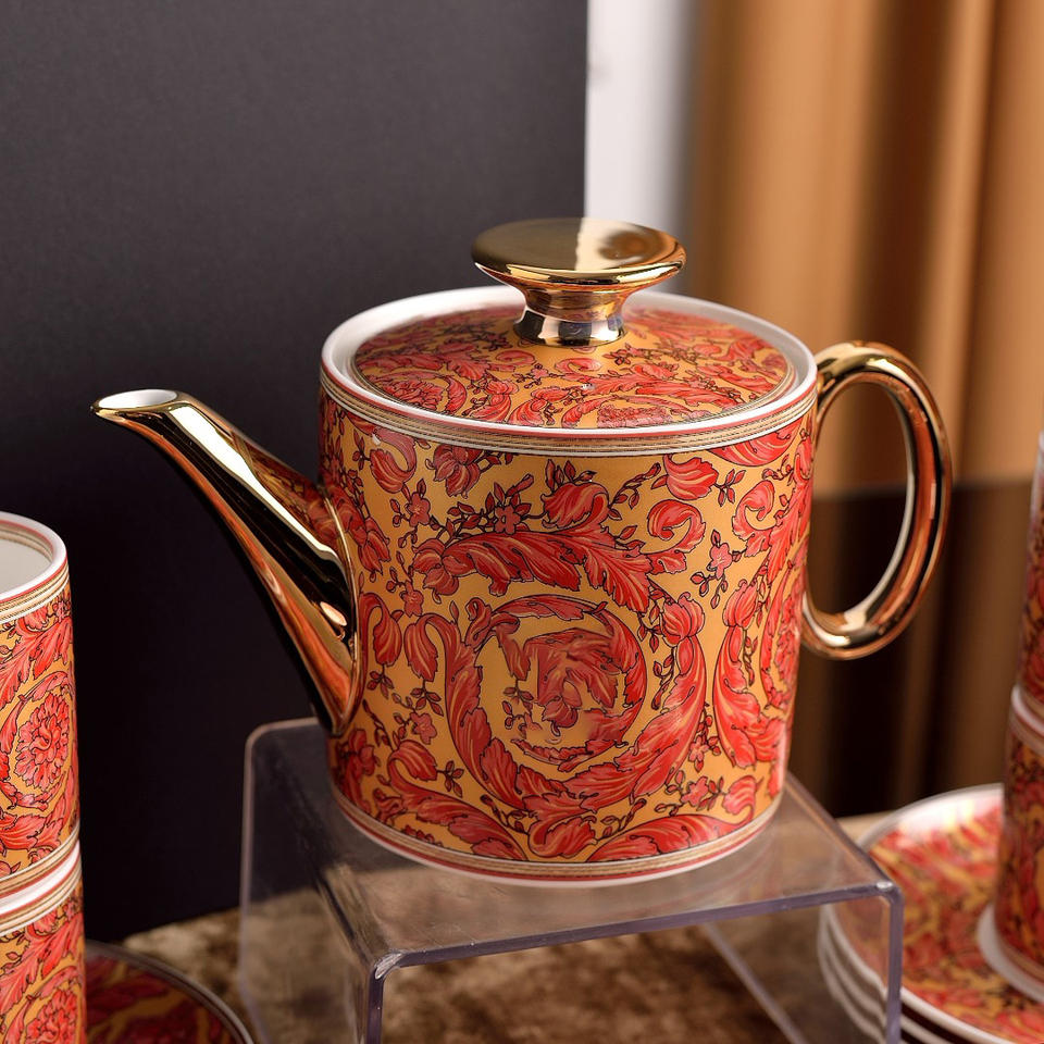 Nom du produit:Service à café de luxe rouge, 15 pièces, en porcelaine fine