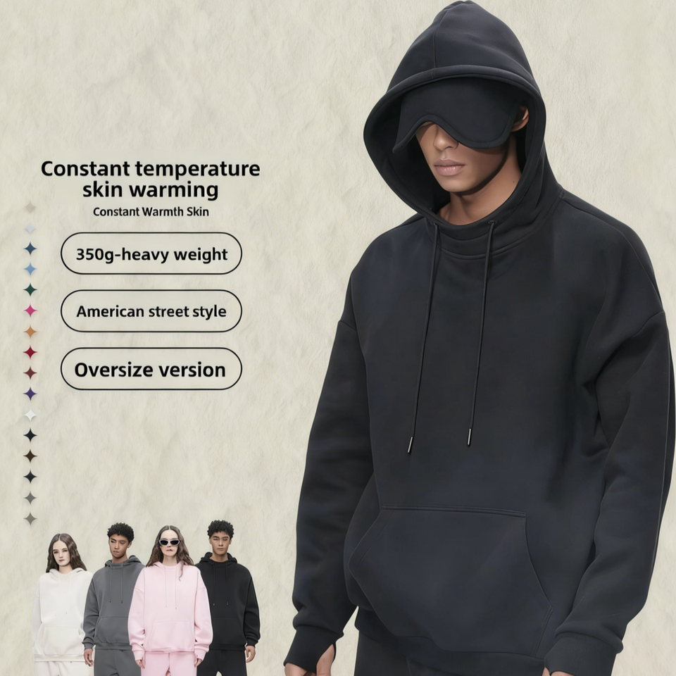 Sweat-shirt à capuche avec masque pour les yeux intégré, 350G, en molleton, style américain, très populaire