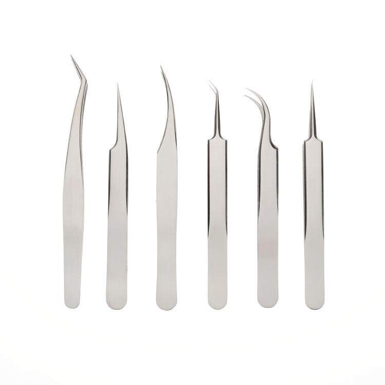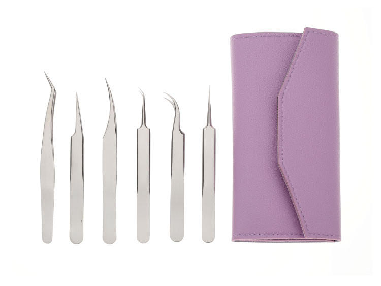 Hot Selling Factory-Made Custom Label Eyelash Tweezers Set 6 Pieces with Stainless Steel Material Pointed Tips Good Quality