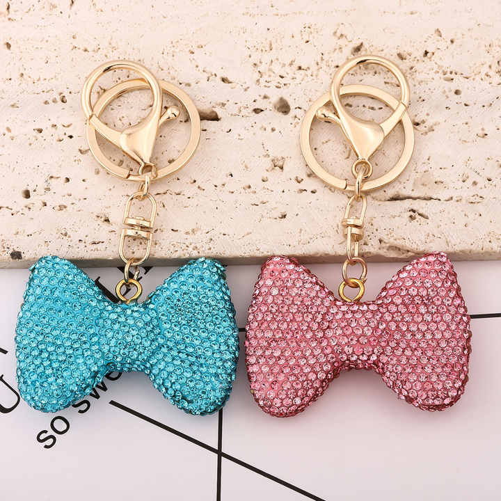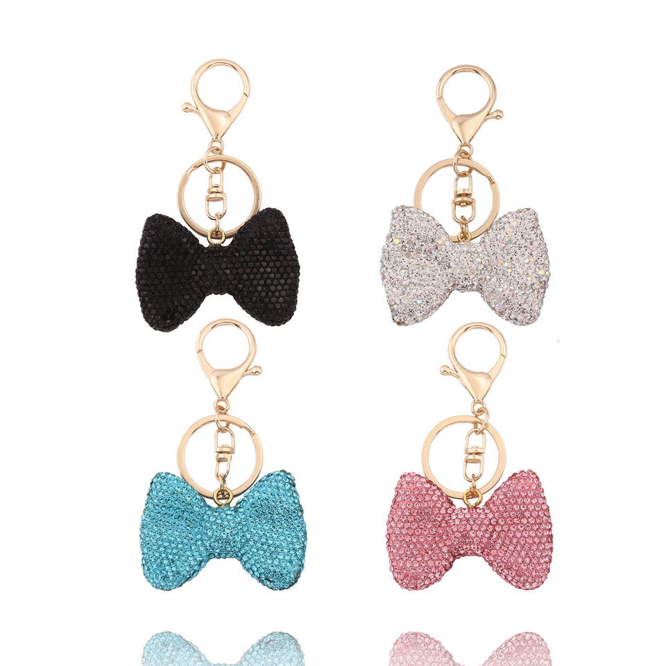 Porte-clés nœud papillon en diamant exquis, style tendance, bijoux pour femmes, pendentif pour sac avec cadeau suspendu, vente chaude