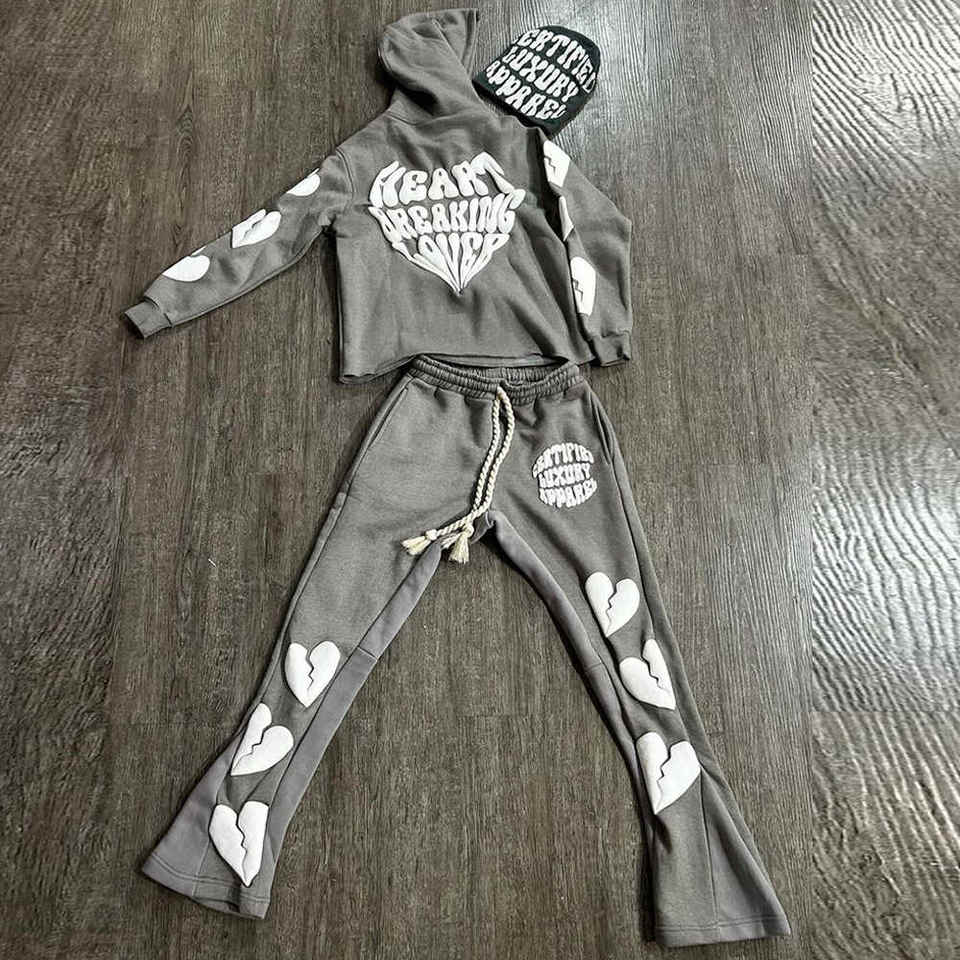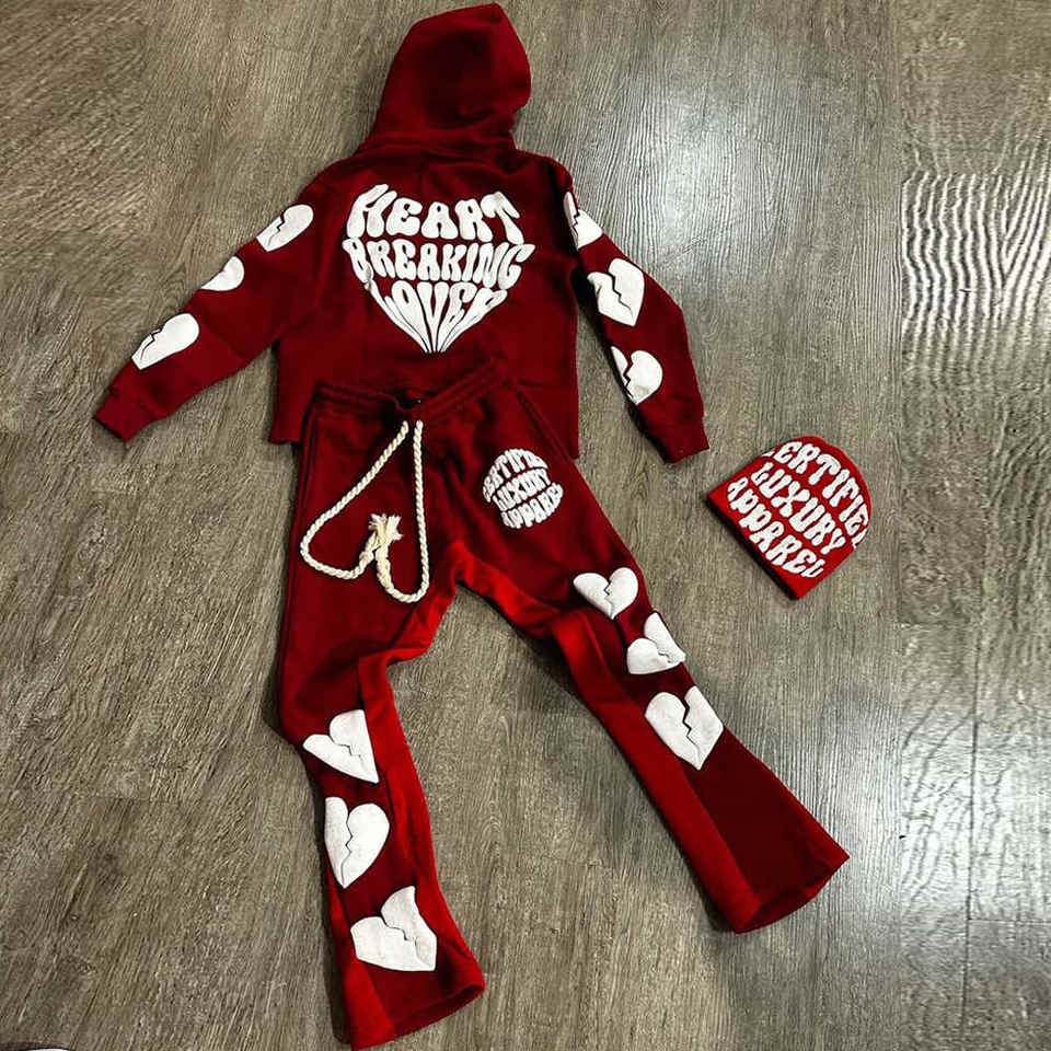 Vente chaude à la mode bouffée impression survêtement avec corde épaisse cordon Slim Fit confortable bouffée impression survêtement