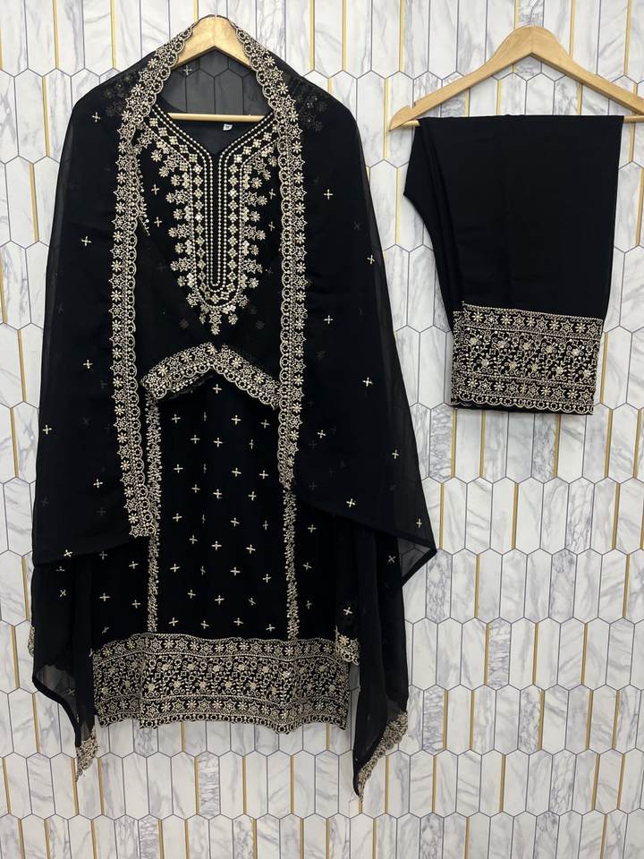 Ensemble de costume pour femme en faux georgette à broderies lourdes, vente chaude, fournisseur mondial de vêtements ethniques islamiques en gros