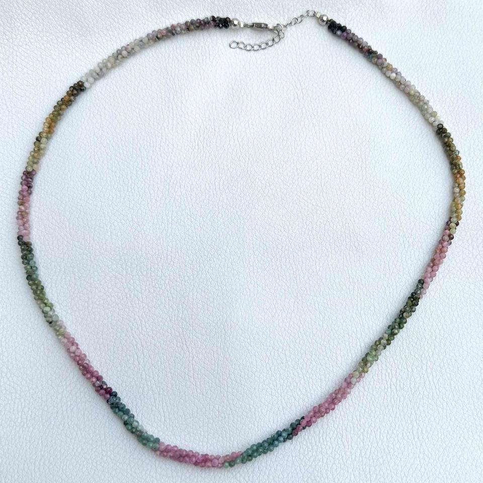 Collier en perles rondes torsadées en tourmaline naturelle certifiée de 2 mm, bijoux en pierres précieuses faits à la main, chaîne de collier avec fermoir en argent 925