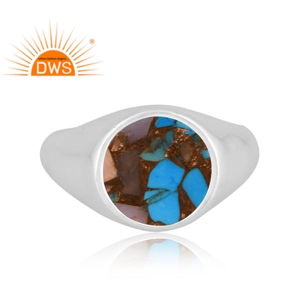 Vente chaude Fine Sterling Silver Mojave Cuivre Rose Opale Turquoise Gemstone Dome Design Ring Fabricant de bijoux personnalisé