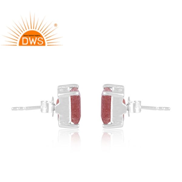 Vente chaude Fine Sterling Silver Natural Strawberry Quartz Gemstone Stud Boucle d'oreille Fabricant de bijoux personnalisés