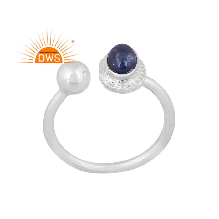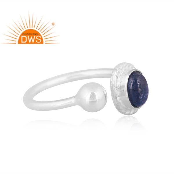 Vente chaude Fine Sterling Silver Naturel Bleu Saphir Gemme Bague Empilable Bijoux Pour Femmes Cadeau Pour Elle