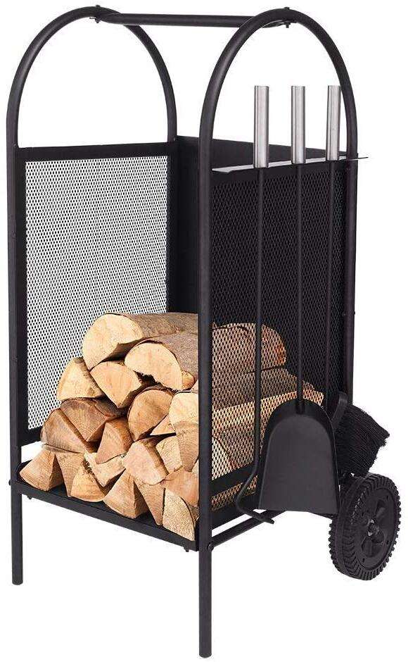Chariot de transport de bûches pour cheminée, en acier inoxydable, avec roues, très vendu