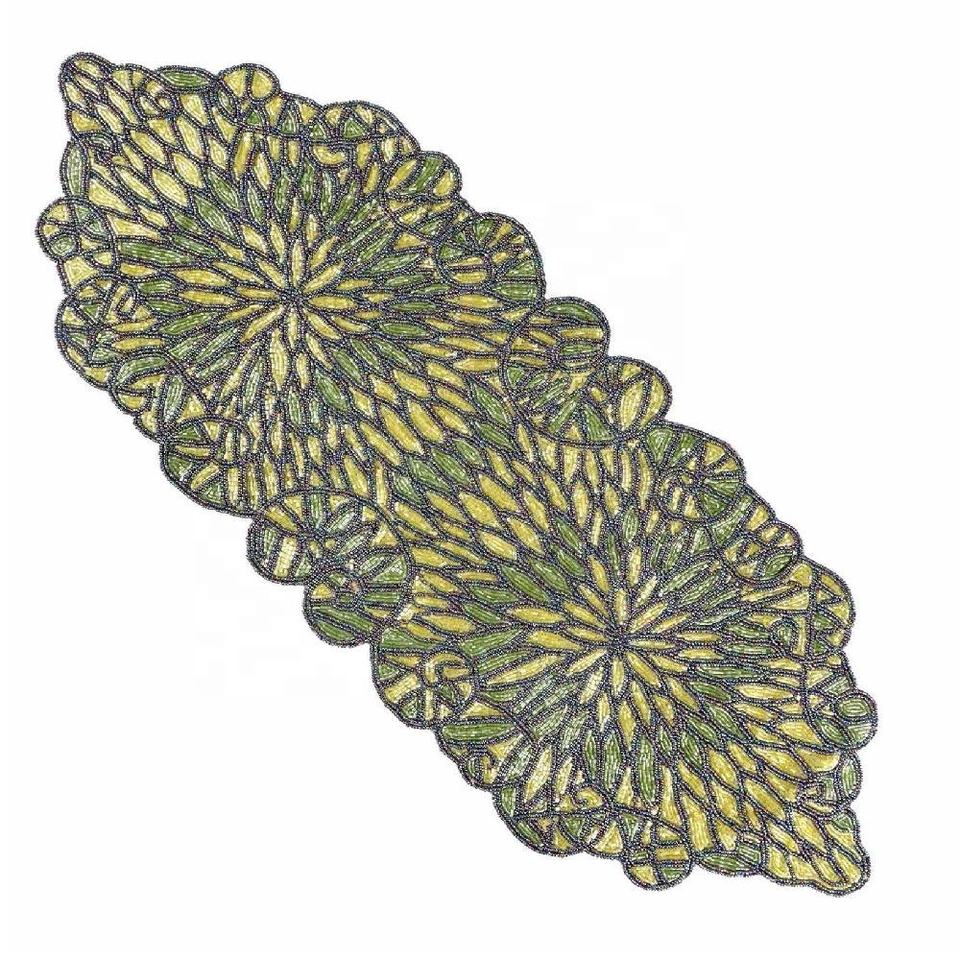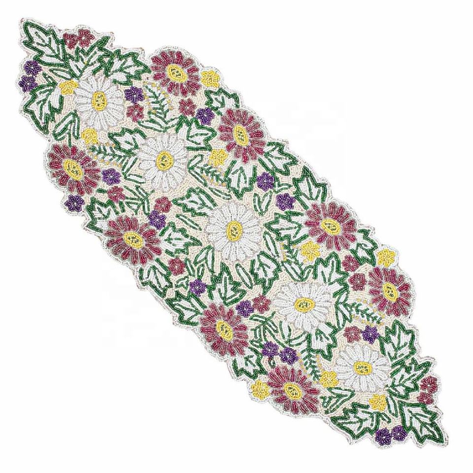 Vente chaude Moderne Floral Design Verre Perlé Chemin De Table Glitz Accent Décoratif pour Tables À Manger Mariages Fêtes