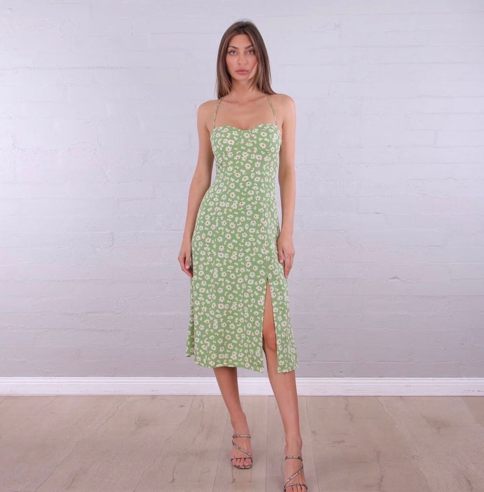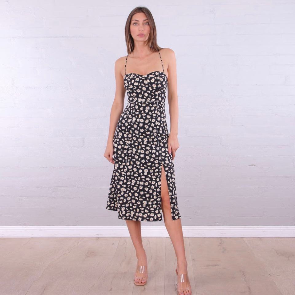Vente chaude fleur imprimé rembourré buste soutien bretelles réglables quotidien plage filles marguerite rêveur robe mi-longue