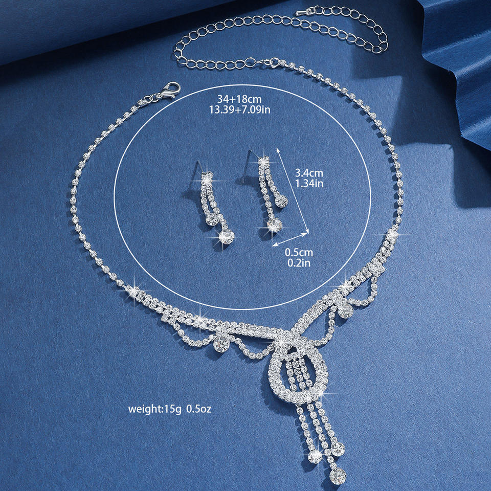 Parure de bijoux tendance pour femme en alliage de zinc plaqué argent avec strass, sertie griffes, pour mariée - Vente chaude à l'export