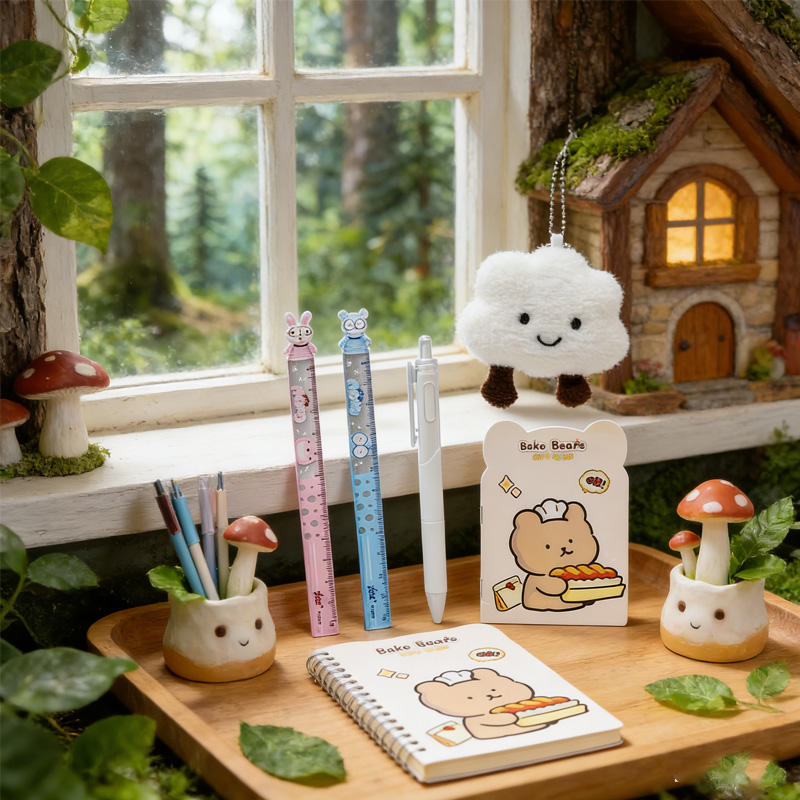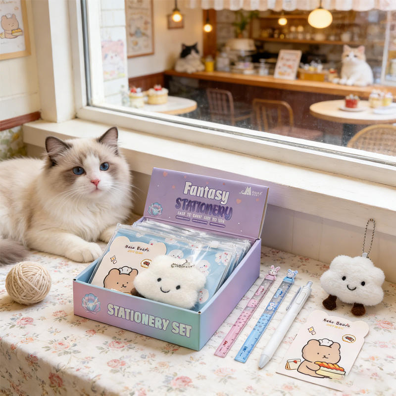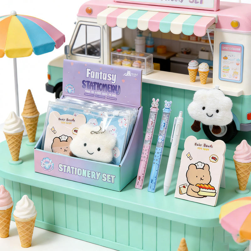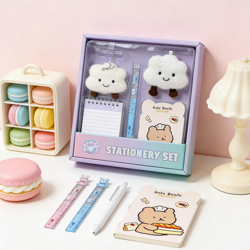Ensemble de papeterie pour enfants de dessin animé de quatre pièces de vente chaude petit cadeau pour les étudiants commençant l'école comprend des porte-clés en peluche