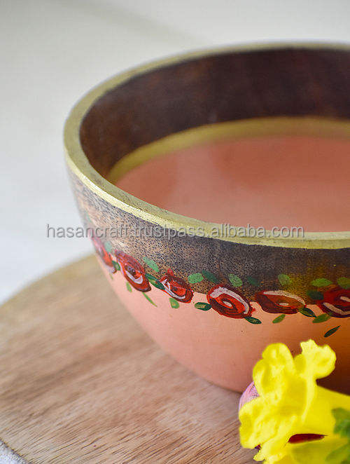 Vente chaude Frits Peint À La Main En Bois De Mangue Bol De Service Jetable Mousse De Montagne Turquoise Conception pour La Fête À La Maison Salade De Nourriture
