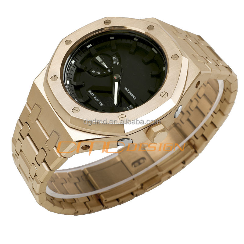 Vente chaude GM2100 Mod Kit avec boîtier en métal doré et bracelet en acier inoxydable Montre Pièce de rechange GA-2100 GA-2110 GA-B2100 WM-2100