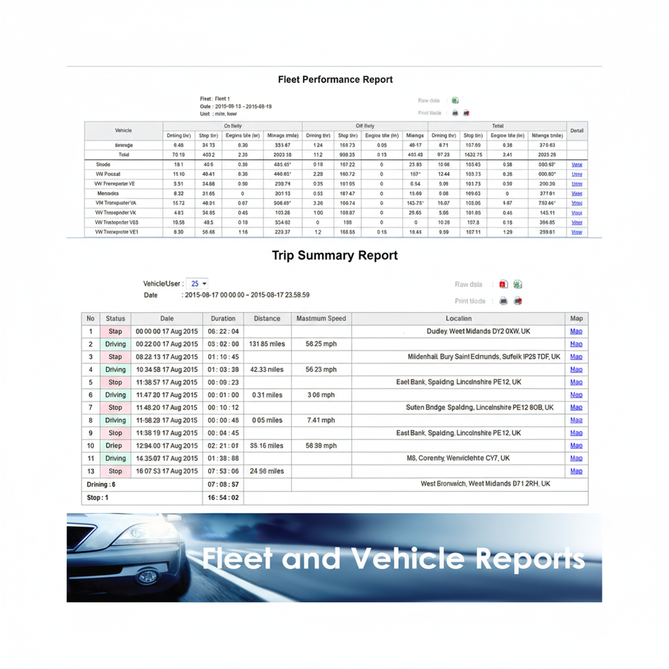 Combinaison:Realtime Tracking, Breadcrumb Trails, Geo-fence, Trip Reports