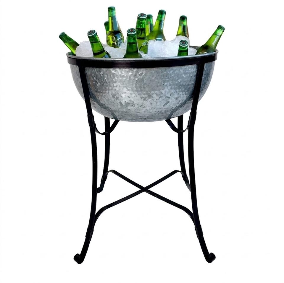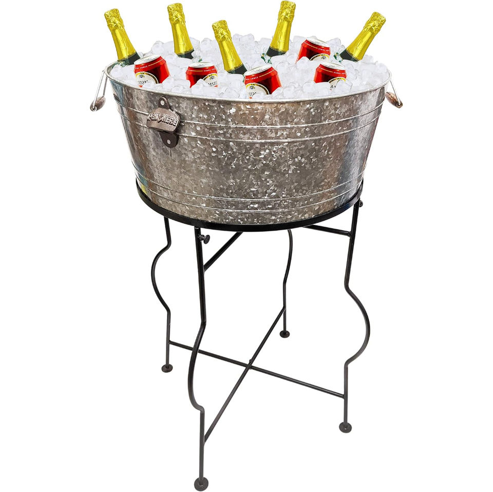 Seau à glace en acier galvanisé avec support et poignées, idéal pour les fêtes, les bars, les barbecues, l'intérieur et l'extérieur - En promotion