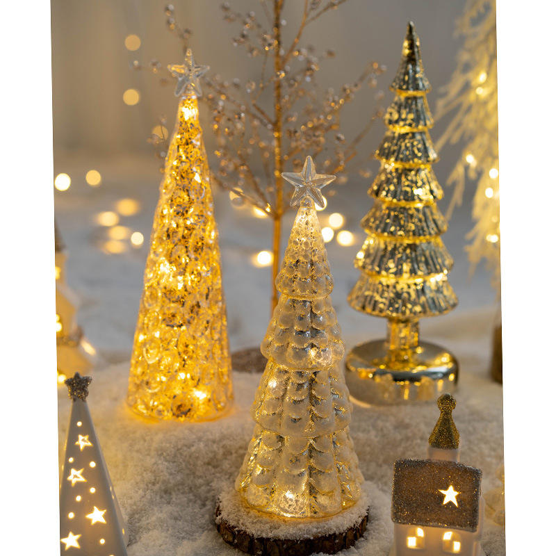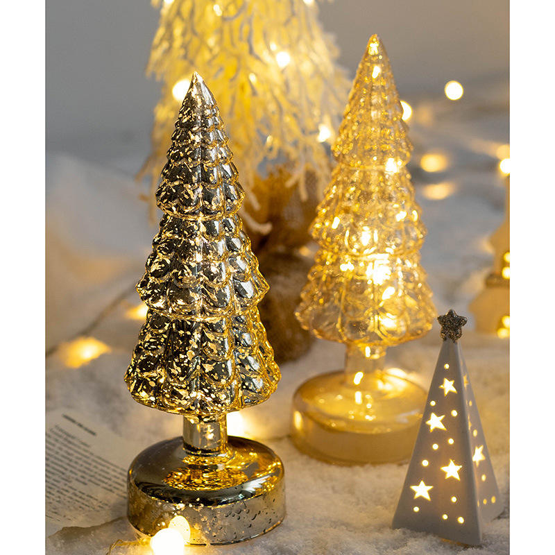 Vente chaude Verre Arbre De Noël LED Lumières Ménage Table Veilleuses Oliday Atmosphère Partie Brillant Éclairage Lampe