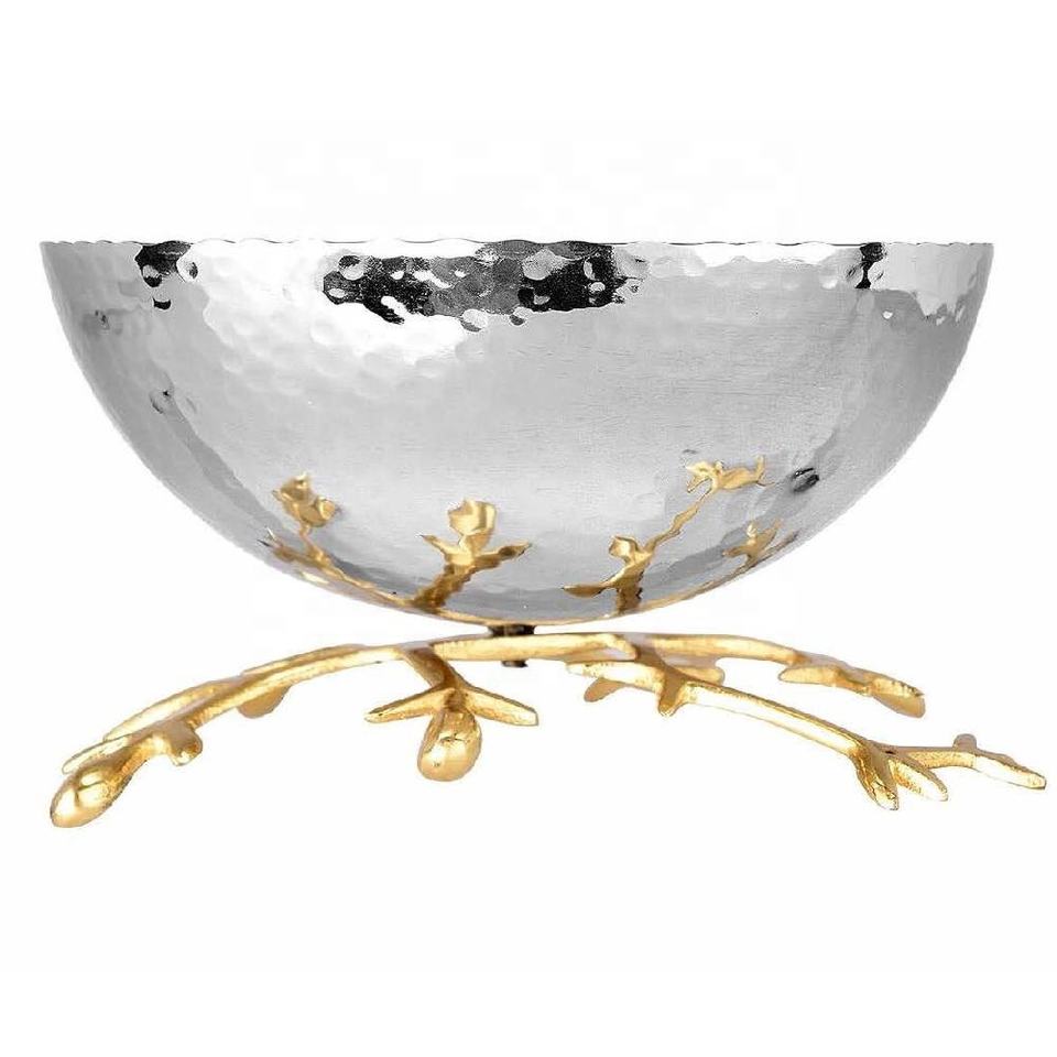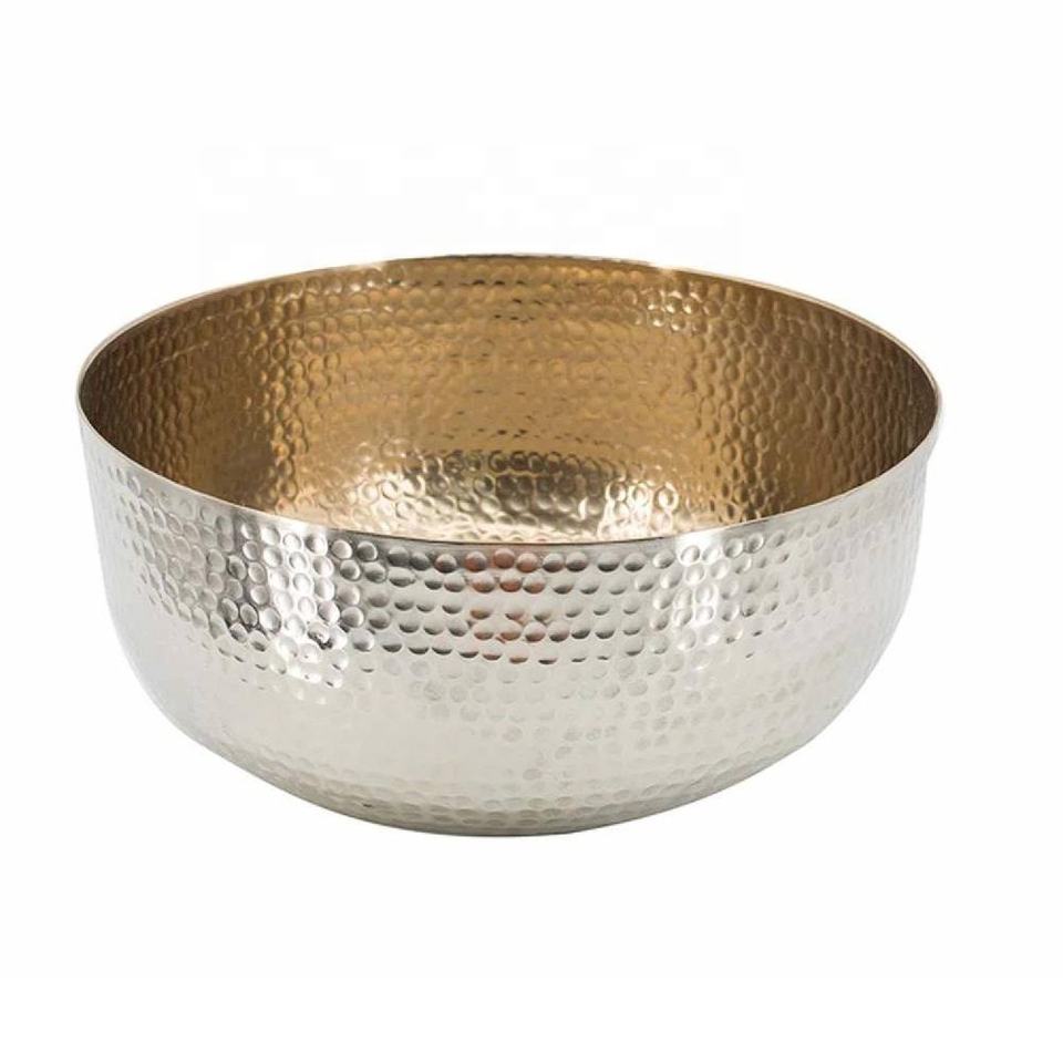 Bol décoratif en aluminium à finition texturée brossée or, parfait pour les arrangements floraux ou les présentoirs de bougies flottantes.