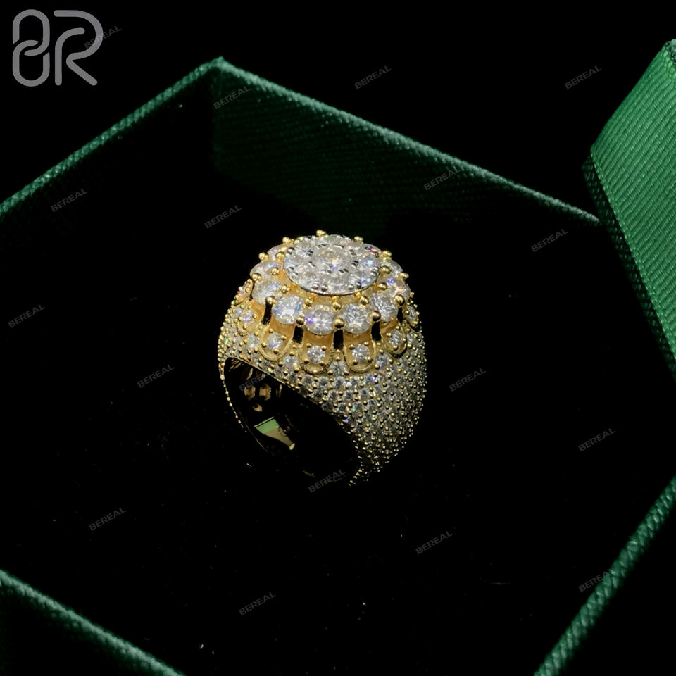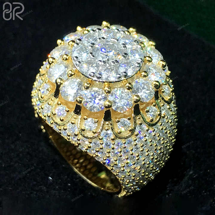 Vente chaude Plaqué Or Vvs Moissanite Hip Hop Anneau Passer Diamant Test Rond Brillant Coupe Diamant 925 Argent Fine Anneau Bijoux