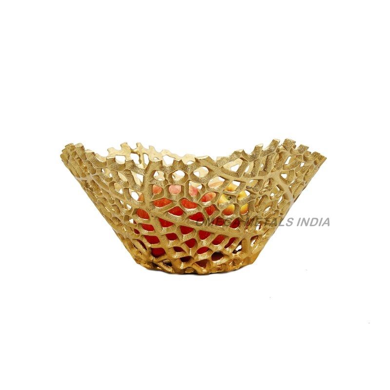 Bol de centre de table élégant en métal doré avec base de style tronc d'arbre, bol de service décoratif pour table à manger et décoration intérieure