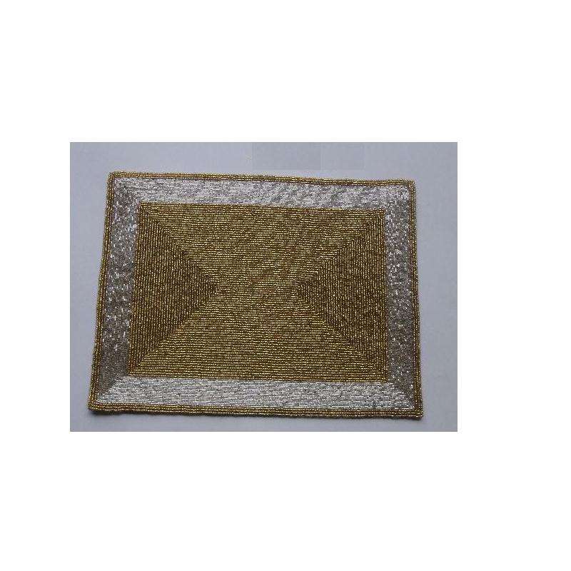 Napperon de perles de verre doré de vente chaude avec tapis de vaisselle à bordure argentée disponible dans plus de couleurs et de motifs tapis de table