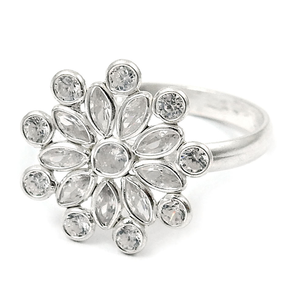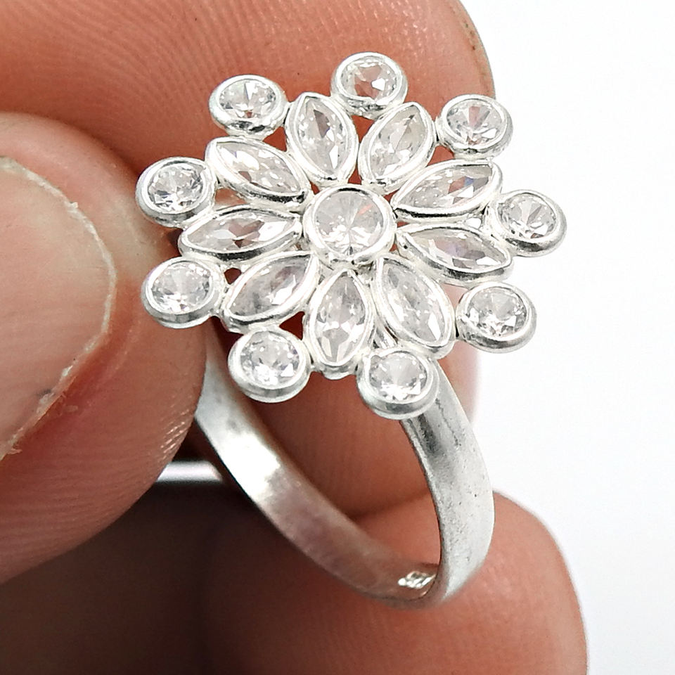 Vente chaude bonne qualité 925 argent Sterling blanc zircon cubique bague en forme de fleur pour fiançailles anniversaire bijoux faits à la main