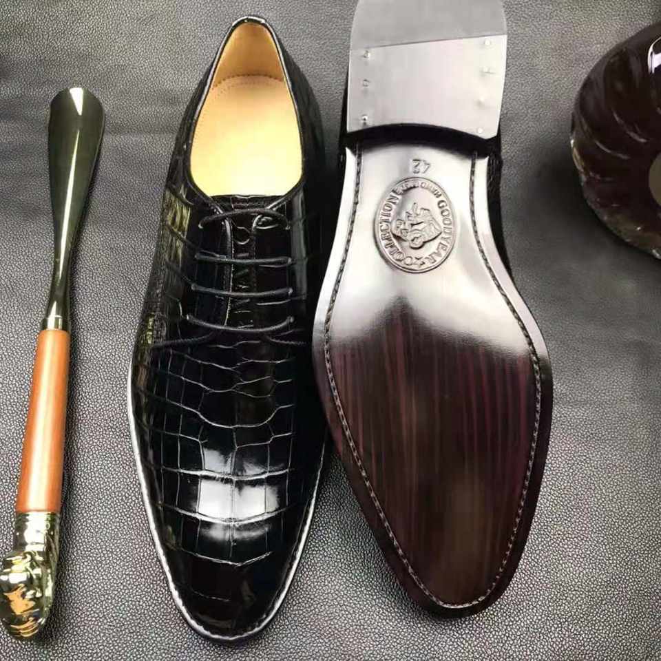 Chaussures Goodyear pour hommes, chaussures en cuir formelles pour hommes, chaussures en cuir de crocodile, chaussures élégantes et intelligentes, chaussures de soirée en alligator pour hommes, vente chaude