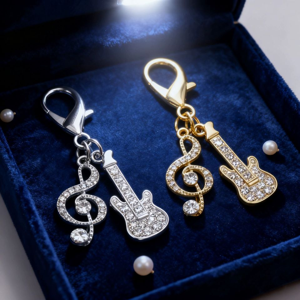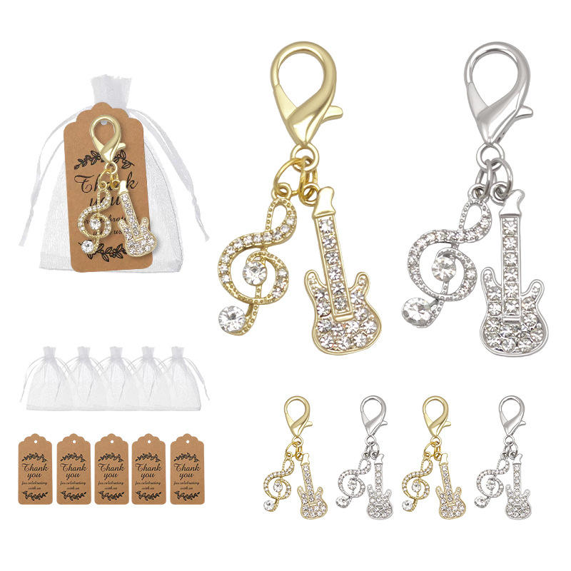 Porte-clés en métal incrusté de diamants en forme de note de musique, cadeau idéal pour les concerts de musique, vente chaude