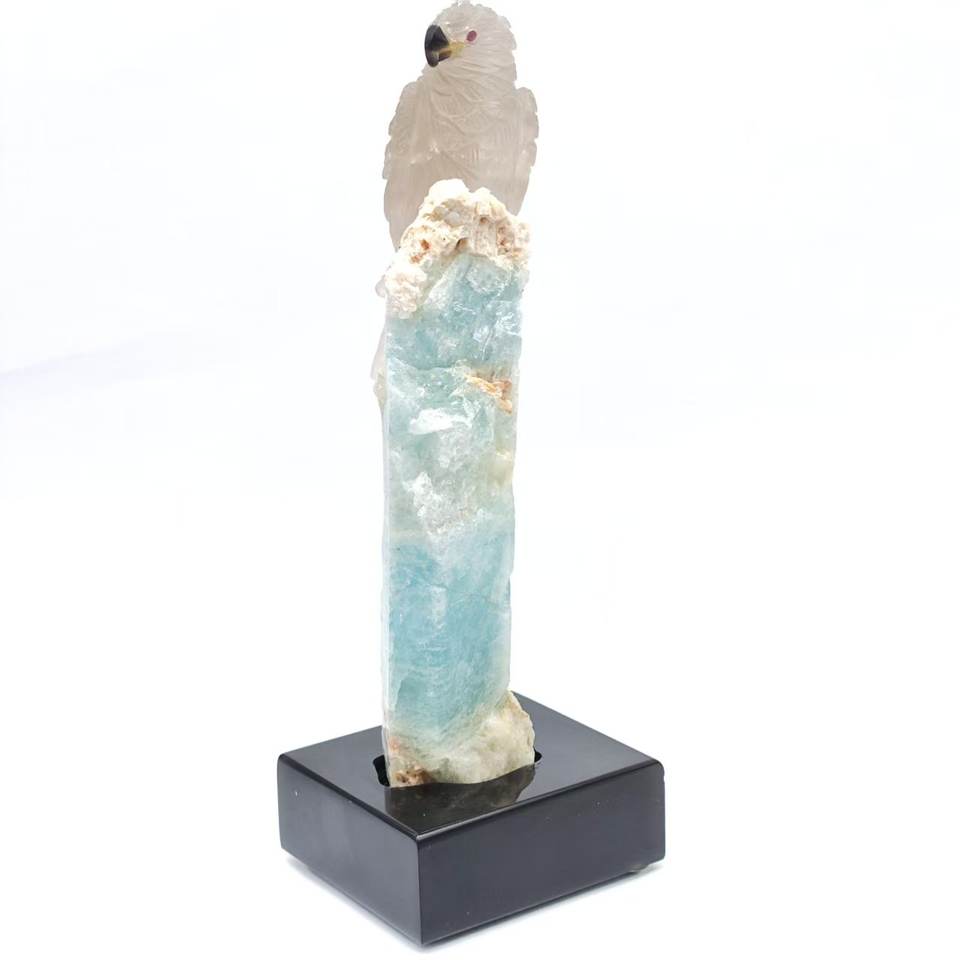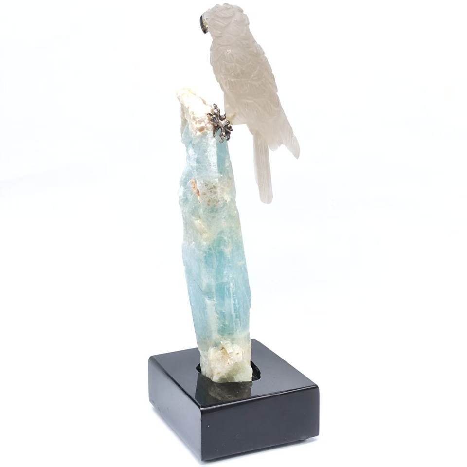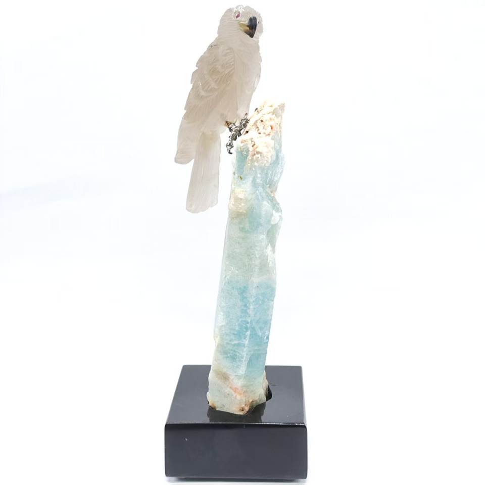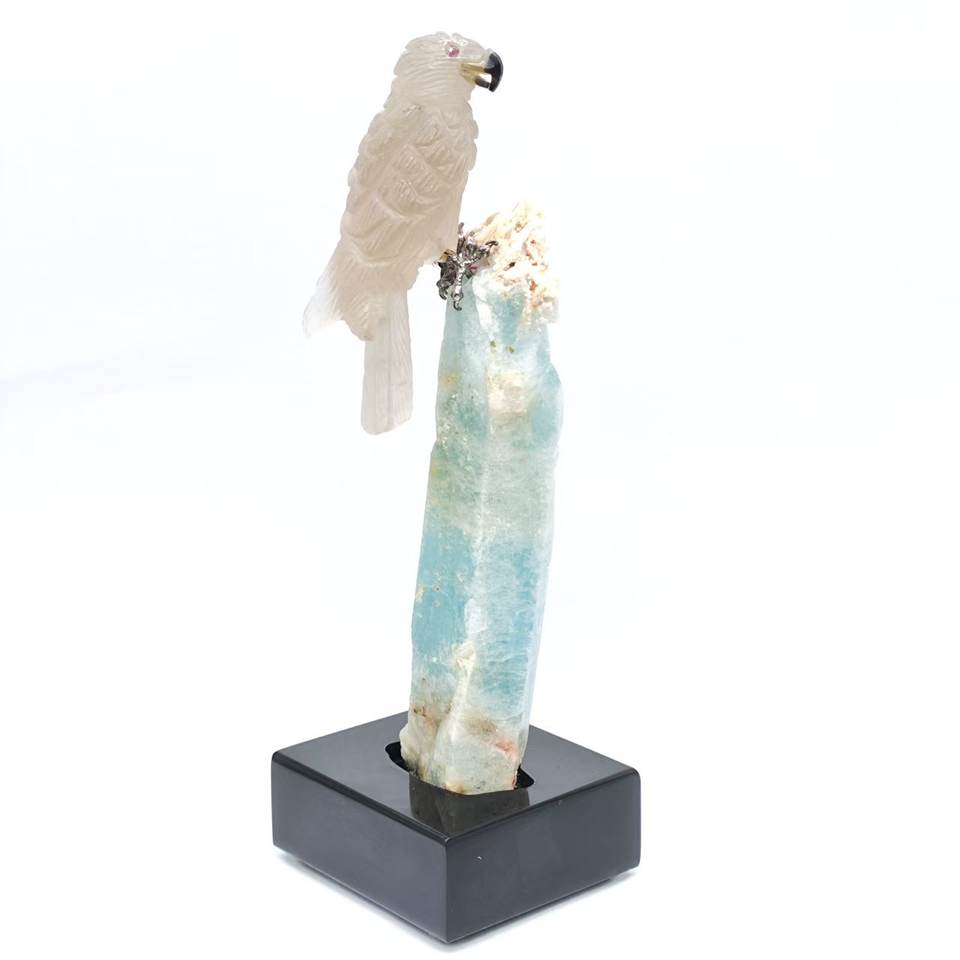 Hibou manuel coloré brésilien, pierre brute, Quartz fumé, Tourmaline, blanc, Art et Collection artistique, 1 pièce