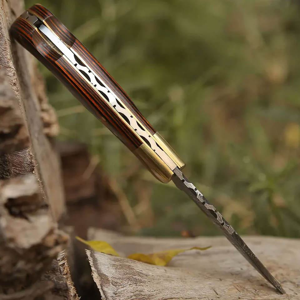 Couteau pliant en acier damas forgé à la main avec manche en bois couteaux pliants faits à la main, meilleure vente