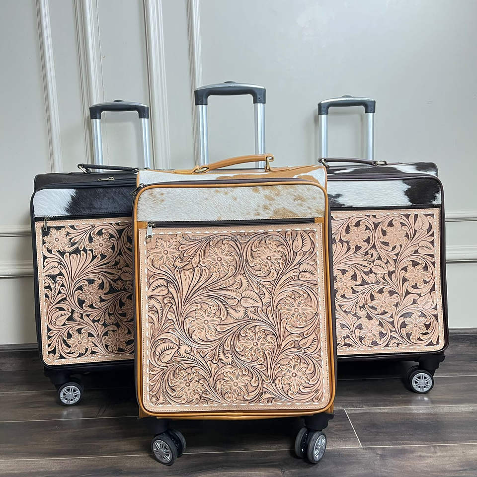 Product Name:Hand Tooled Cowhide Leather Wheel Trolley Suitcase