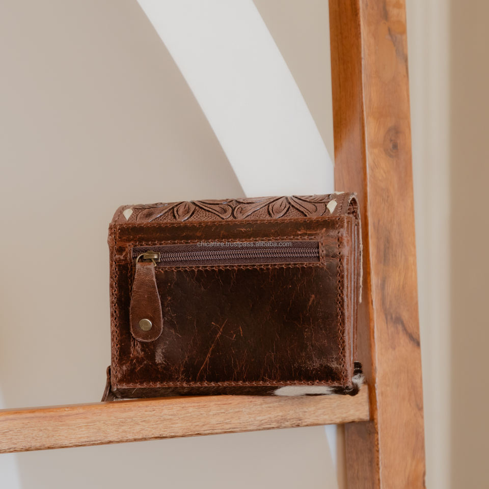 Portefeuille occidental en cuir sculpté à la main
