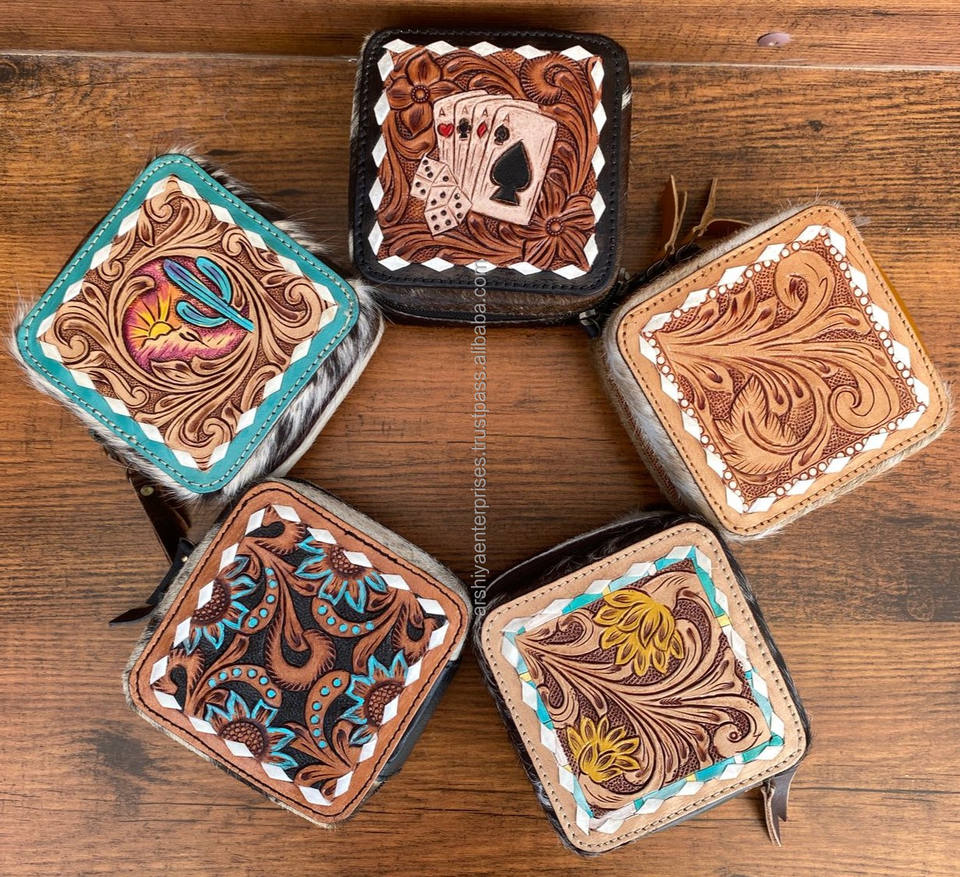 Vente chaude cuir repoussé à la main personnalisé Portable Mini boîte à bijoux petit organisateur de bijoux stockage voyage peau de vache boîtes à bijoux
