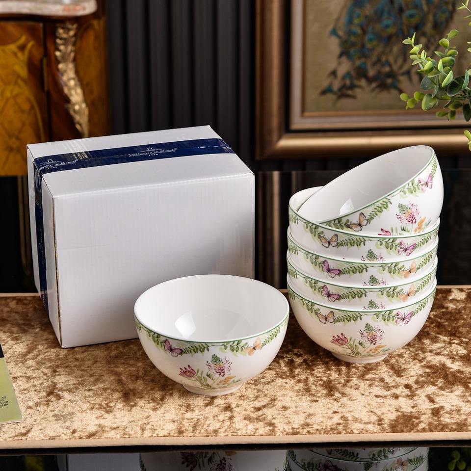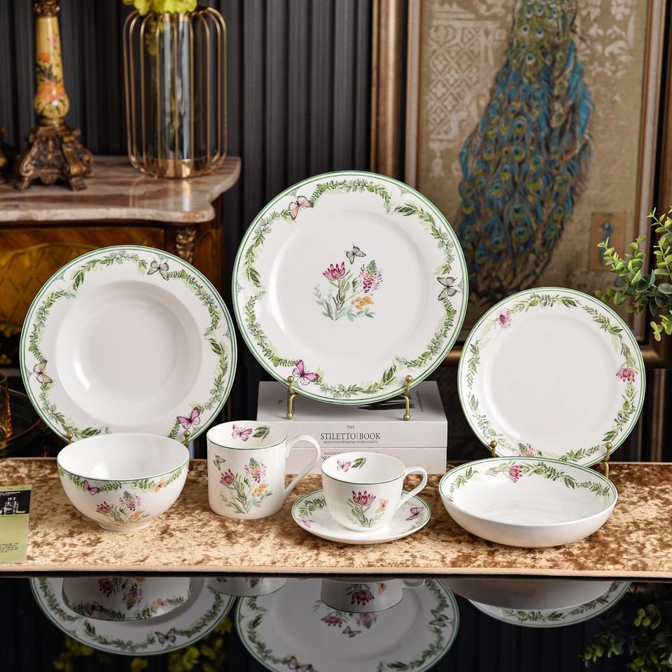 Vaisselle peinte à la main, très demandée, pour mariage : assiette à fleurs, bol à riz, tasse à café, soucoupe, mug.