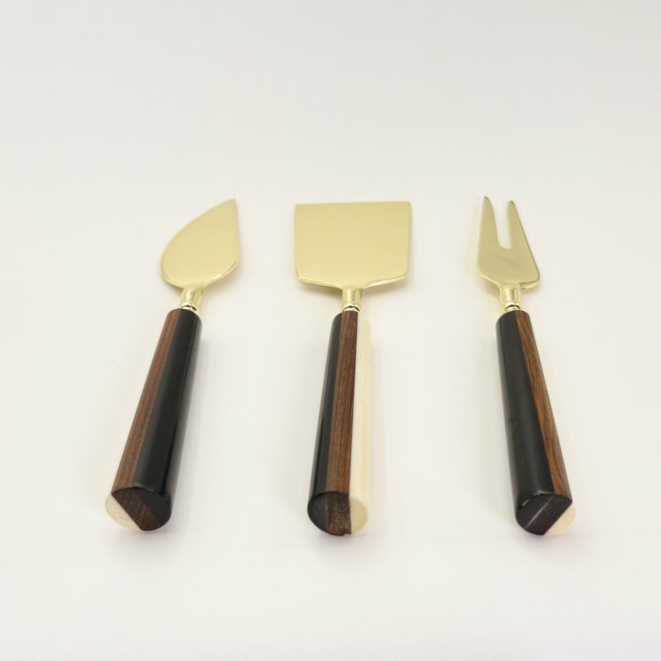 Ensemble de 3 couteaux à fromage en acier inoxydable faits à la main, avec manche en résine, pour servir le fromage au petit-déjeuner – Vente chaude