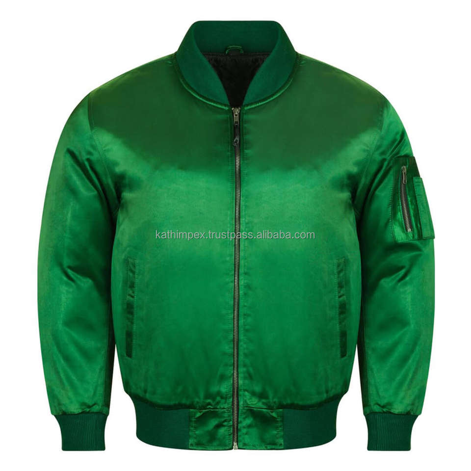Vente chaude à la main écologique hommes vert Satin Bomber veste fermeture à glissière décontracté Streetwear multi-poches commande en gros