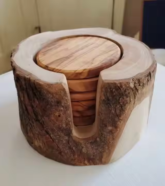 Vente chaude de sous-verres ronds en bois écologiques faits à la main en bois de noyer de style classique à bas prix par Crescent Crafts