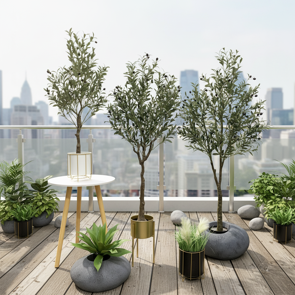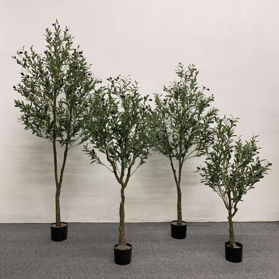 Pot de plantes artificielles en PU fait main, style olivier, très demandé, matériau durable, résistant aux UV, feuillage luxuriant, pour décoration intérieure et extérieure