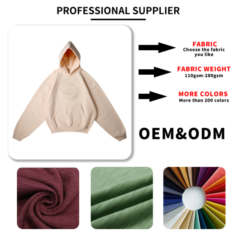Vente à chaud de sweat à capuche avec logo personnalisé 3D gaufrage sérigraphie sweat à capuche pour hommes