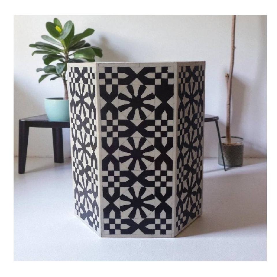 Vente chaude Hexagone Forme Os Tabouret Moderne Motif Os Incrustation Table D'appoint Salon Table D'extrémité Os Incrustation Chevet Décor À La Maison