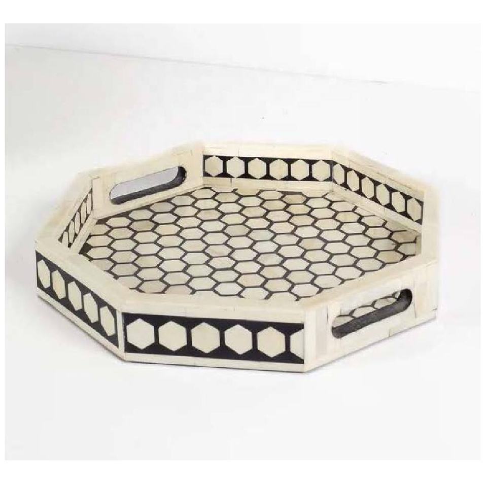 Hot Selling Hexagonal Design Bone Inlay Handcrafted Serving Tray Black Cream 30x30cm Table Top Decorative Breakfast Tray