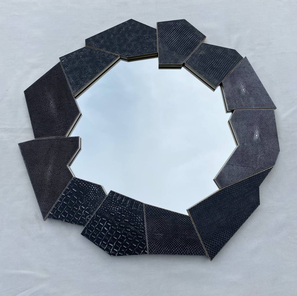 Miroir Mural Décoratif Rond en Bois Faux Shagreen de Haute Qualité, Fait Main, en Verre, pour Chambre et Salon – Meilleure Vente