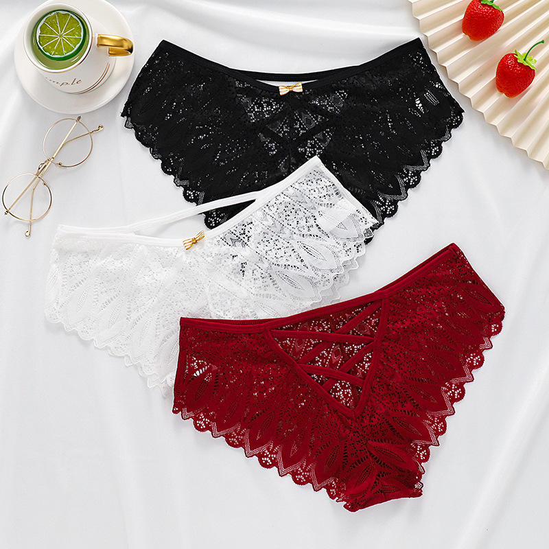 Culotte Triangle Femme Sexy Taille Moyenne en Dentelle Creuse à Bretelles Croisées Grande Taille – Nouvelle Collection Très Demandée