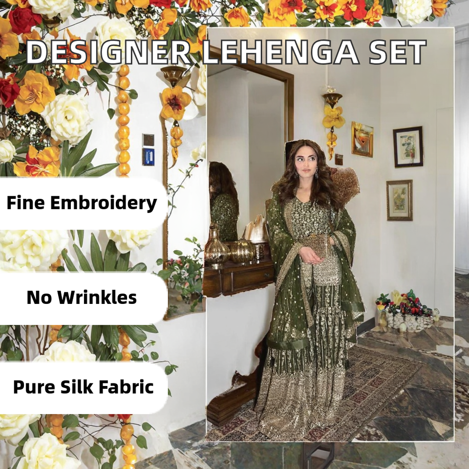 Ensemble Lehenga Haut et Dupatta en Soie de Designer de Haute Qualité, Très Vendu, Magnifique, Broderie, Tissu Georgette, Réversible, Infroissable